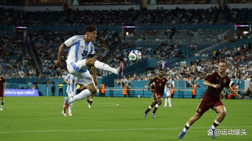 阿根廷与委内瑞拉的比赛在迈阿密硬石体育场进行,梅西未能参赛,坐在看台上观战。阿根廷主帅斯卡洛尼派出劳塔罗·马丁内斯和朱利安·阿尔瓦雷斯作为锋线搭档。比赛开始不久,第7分钟,劳塔罗在距离门仅3米的位置接到传中,但却将球射偏,错失了绝佳机会。紧接着,在第17分钟,尼科·帕斯的远射击中了立柱。阿根廷在控球和传球上的优势可见一斑,控球率达到70%,传球成功率高达92%,他们完全掌控了比赛节奏。第31分钟,劳塔罗背身接球后将球巧妙地分给左路插上的洛塞尔索,后者低射破门,为阿根廷打破僵局。尽管劳塔罗为球队贡献了助攻,但他接下来的表现却令人沮丧。