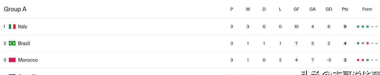 意大利与巴西的进球大战更是将这种“混乱”推向高潮。两队联手贡献7粒进球,最终意大利4比3险胜,锁定小组头名。