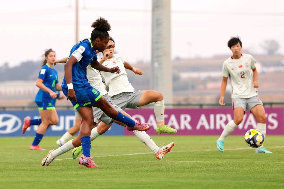 回顾比赛,开场仅3分钟,巴西队凯兰如闪电般突破中国队防线,一脚冷静的小角度射门,洞穿了中国队的球门,梦魇般的“闪电失球”让比赛一开始就蒙上了一层阴影。然而,失利并未击垮中国队的斗志,姑娘们迅速调整状态,组织起一波又一波的进攻。第9分钟,俞天桢获得了一次宝贵的单刀机会,可惜她的射门被巴西队门将神勇扑出。上半场比赛,中国队的核心球员周欣怡表现活跃,她的一脚势大力沉的抽射,被对方门将扑了一下后击中横梁,弹出了底线,引来一片叹息;随后,她在禁区内的巧妙推射,又被对方门将稳稳地化解。上半场补时阶段,中国队后卫张克璨在禁区内的一次略显冒失的犯规,送给对方一粒点球,幸运的是,巴西队球员操刀主罚,却将球踢飞,中国队带着一球落后的劣势进入中场休息。