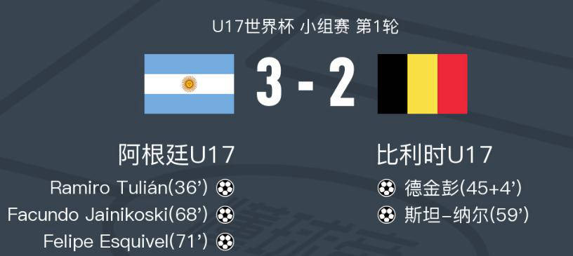 仅仅三分钟后,阿根廷再度发起进攻,在禁区内快速传球,最终由费利佩・埃斯基韦尔射入制胜球,将比分改写为3-2,终场比分也定格在这个数字上。