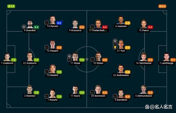 比赛还剩20分钟时,佩里西奇突然加速,甩开维尔约穆尔·戴维森(Viljormur Davidsen)后送出一记极具威胁的传中,尼古拉·弗拉西奇(Nikola Vlasic)在远门柱凌空抽射破门。