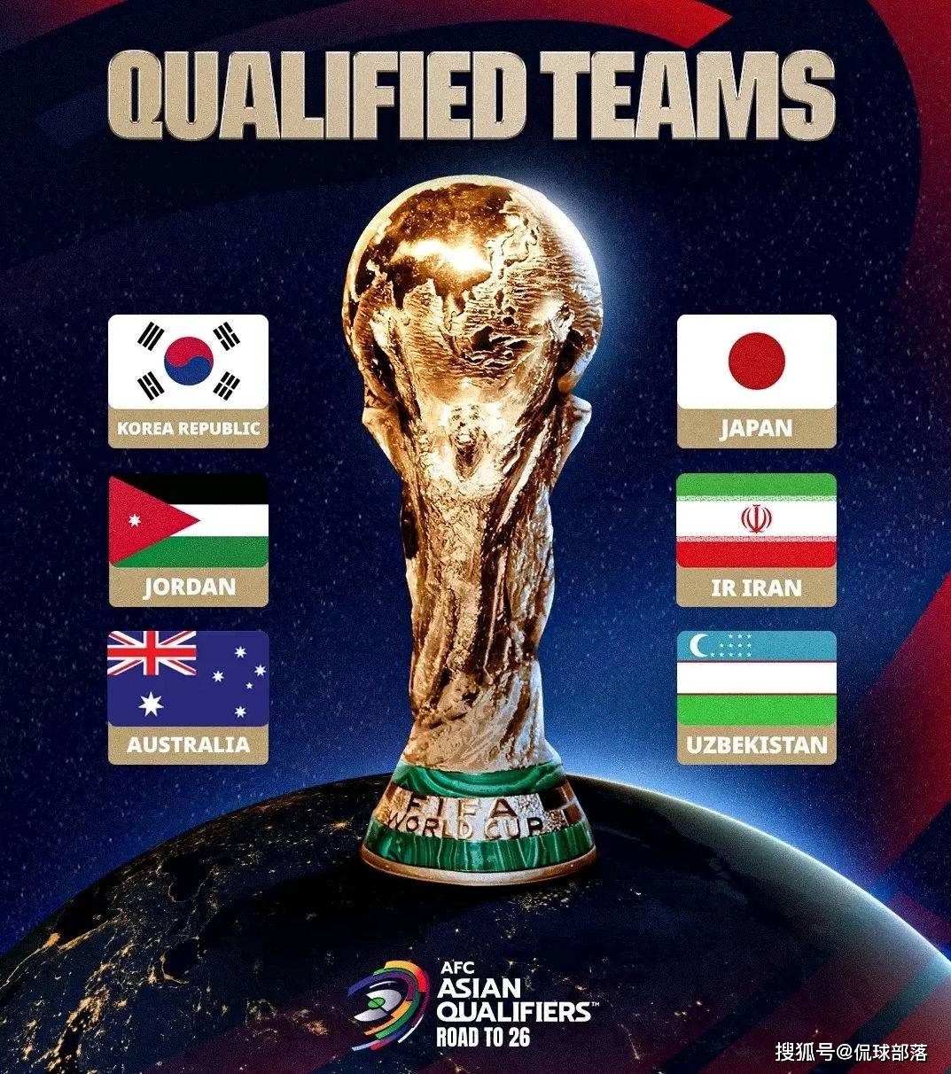 此前第三阶段,也就是18强赛,日本、伊朗、韩国、约旦、乌兹别克斯坦、澳大利亚已经直通世界杯,另外卡塔尔、沙特、伊拉克、阿联酋、印尼、阿曼携手晋级附加赛,争夺剩余2.5个名额,国足最终排名小组第五,再次无缘世界杯。