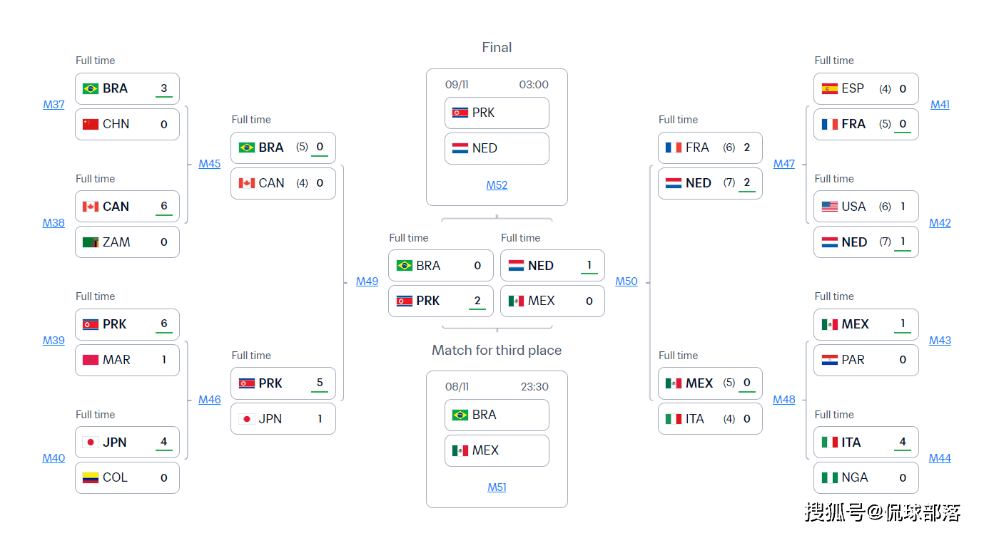 至此,朝鲜以6战全胜轰22球的表现,强势打进决赛,这是队史第五次做到,超越西班牙,成为这项赛事打进决赛次数最多的球队。