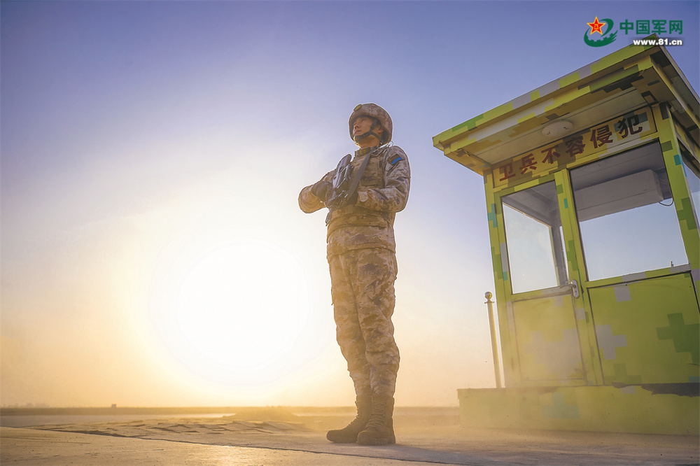 戈壁夜晚,狂风肆虐,一阵阵抽打着岗亭的玻璃。风透过门缝钻进来,化作尖锐的哨音。正在站哨的空军某场站上等兵宋月华打了个寒战,他深吸一口气,随即绷紧腰腹,将本已笔挺的军姿又向上拔了拔。
