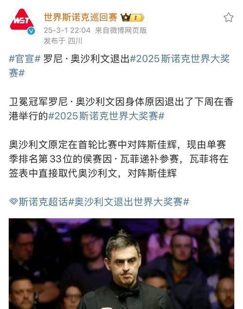 世界杯,2026世界杯,世界杯直播,世界杯投注,世界杯盘口,世界杯比分预测,聚焦2026年世界杯,提供最全面的赛程、直播、比分、投注推荐与爆冷预测信息。中文用户专属足球社区,助您精准分析,轻松购彩。就在几天前,斯诺克界的“GOAT”奥沙利了一个让吃瓜群众惊掉下巴的决定:直接退出球员锦标赛。要知道,这比赛的冠军奖金可是15万英镑(约合人民币130多万)。对于普通人来说,这是一套房的首付,是十年的工资,但对于奥沙利文来说,这却是一个必须躲避的“陷阱”。